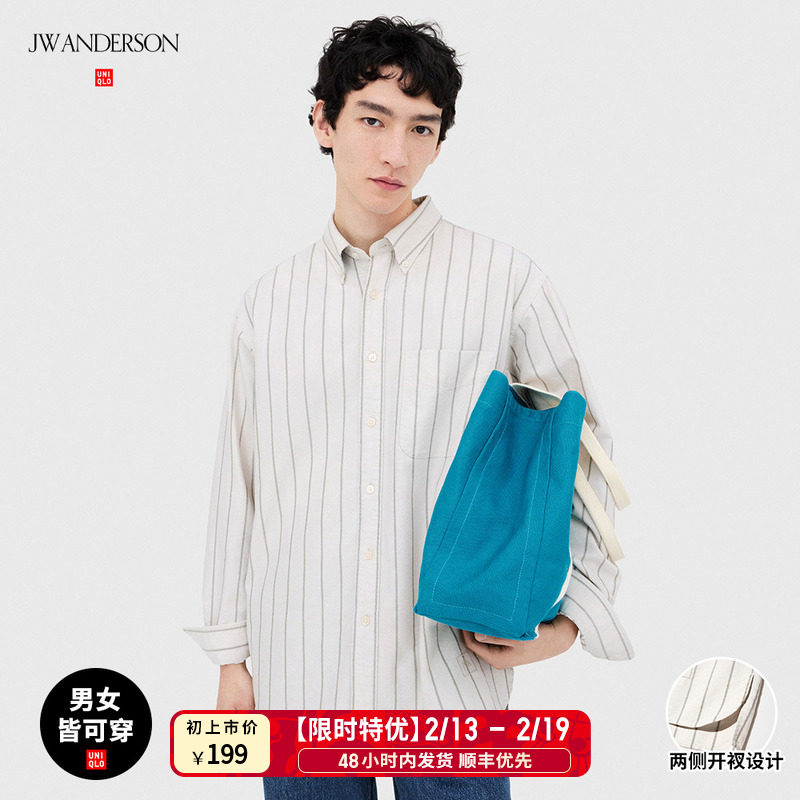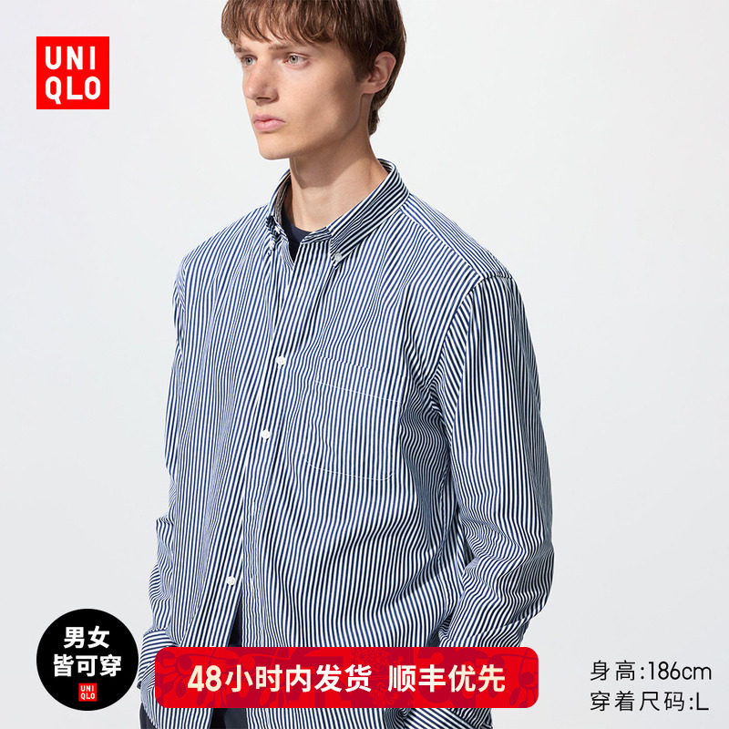 Priority is given to SF Uniqlo collaboration model/men's and women's Oxford loose striped shirt/long-sleeved 480802
