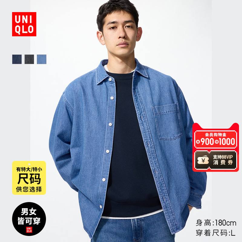 Uniqlo Men's and Women's Denim Loose Shirts/Washable Products Long Sleeve Shirts 25 New 478115 480761