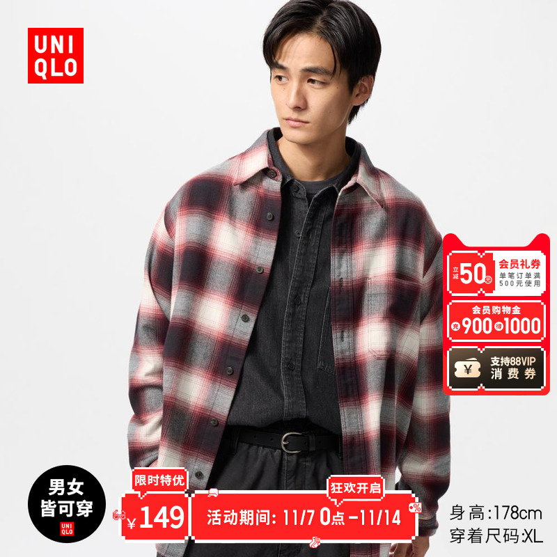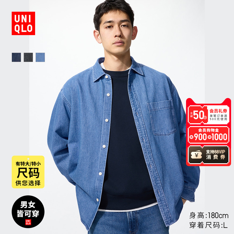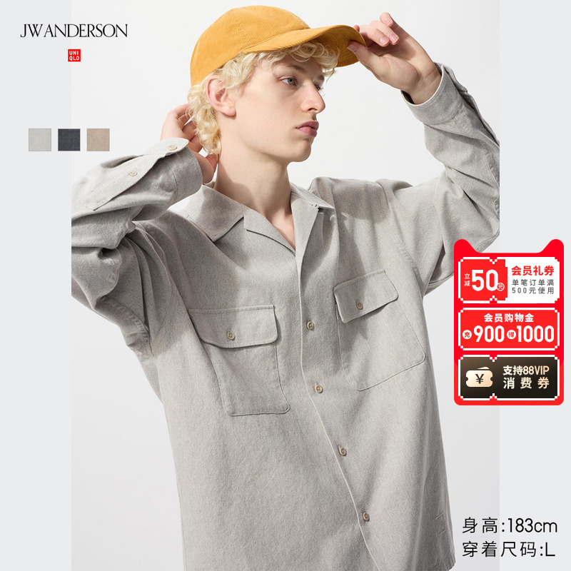 Uniqlo Collaboration Men's Women's Soft Cotton Open-Collar Loose Shirt Long Sleeve Shirt 25 New 479997