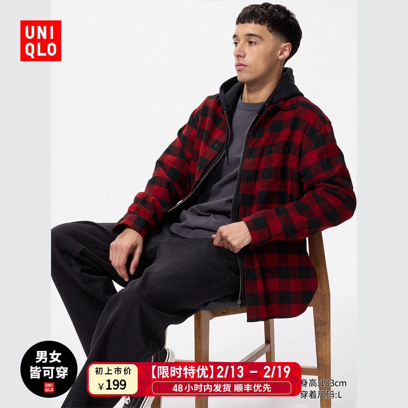 Priority is given to SF Uniqlo men's and women's flannel plaid shirts, long-sleeved shirts, light coats, 481225