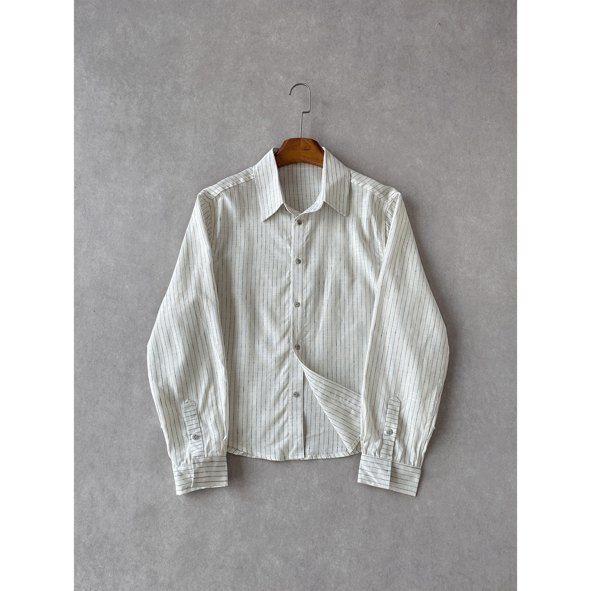 H1c striped * Tencel linen high-intelligence Boxy long-sleeved shirt stiff and stylish/elegant and loose