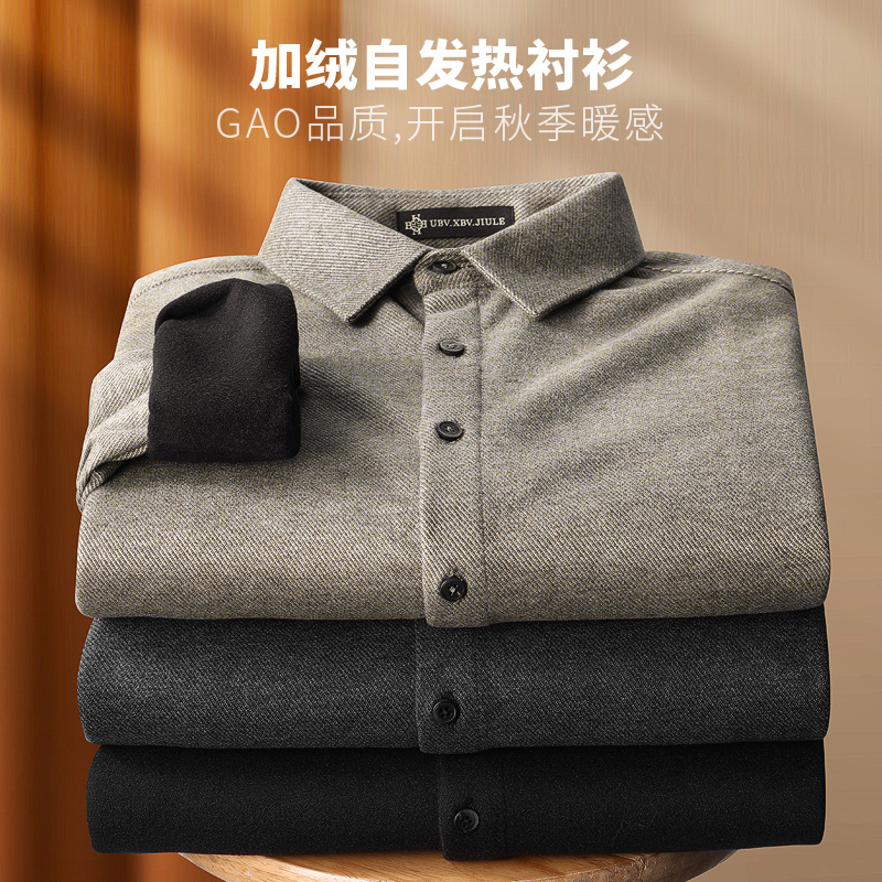 UBV Faux Tweed Shirt Long Sleeve Men's Fall/Winter 2025 Fleece Warm Shirt Light Business Casual Thickened Brushed