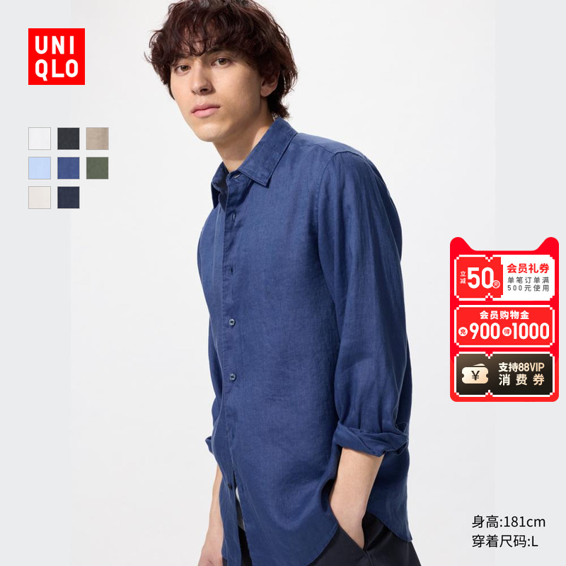 Uniqlo Men's Women's French Linen Shirt/Long Sleeve Shirt Linen Casual 477641