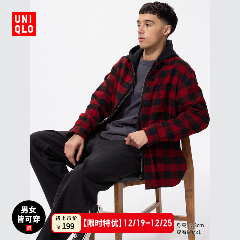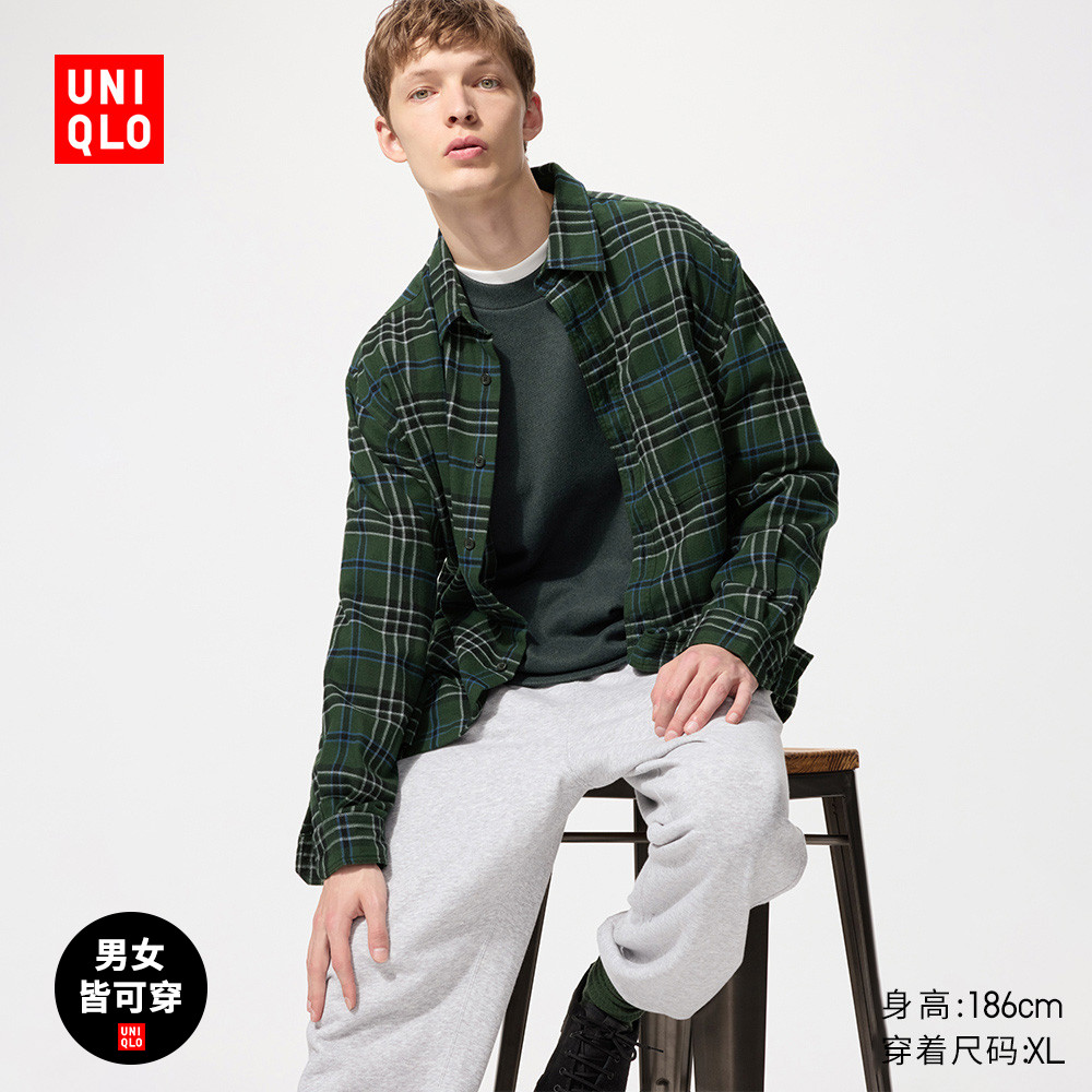 Uniqlo men's and women's flannel plaid shirts long-sleeved shirts thin coats 25 fall-winter 480772
