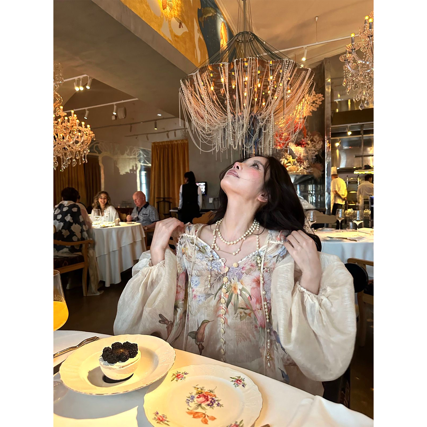 FuunJ ◆ Venemantha French court Tencel floral lantern sleeve shirt women's vintage shirt long sleeve top
