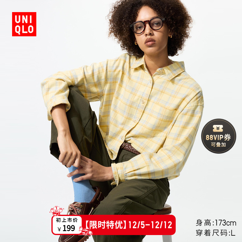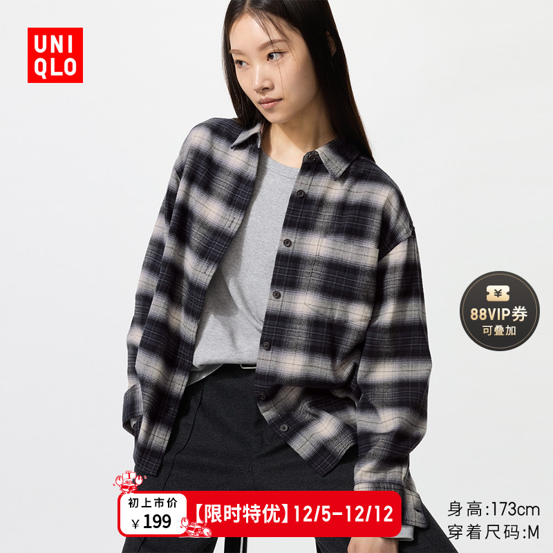 Uniqlo Women's Flannel Shirt/Plaid Long Sleeve Shirt 25 Fall/Winter New 481173