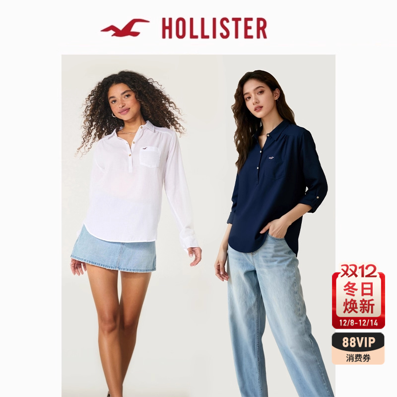 Hollister Little Seagull Pattern Classic Three-Button American Simple Versatile Shirt Women's 340-5084
