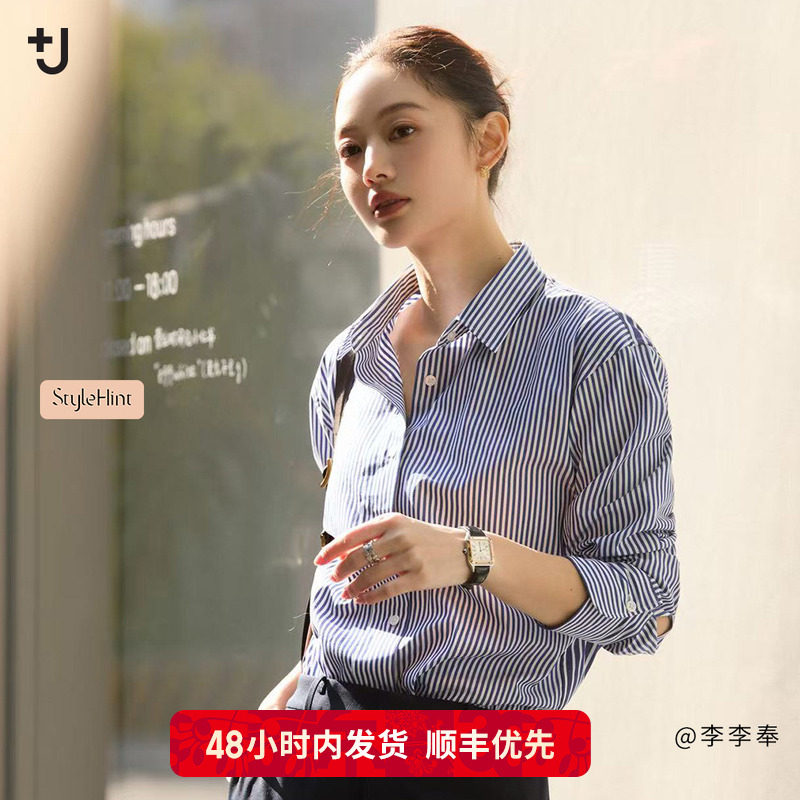 Priority is given to SF Uniqlo women's loose striped shirt/long-sleeved shirt 487756