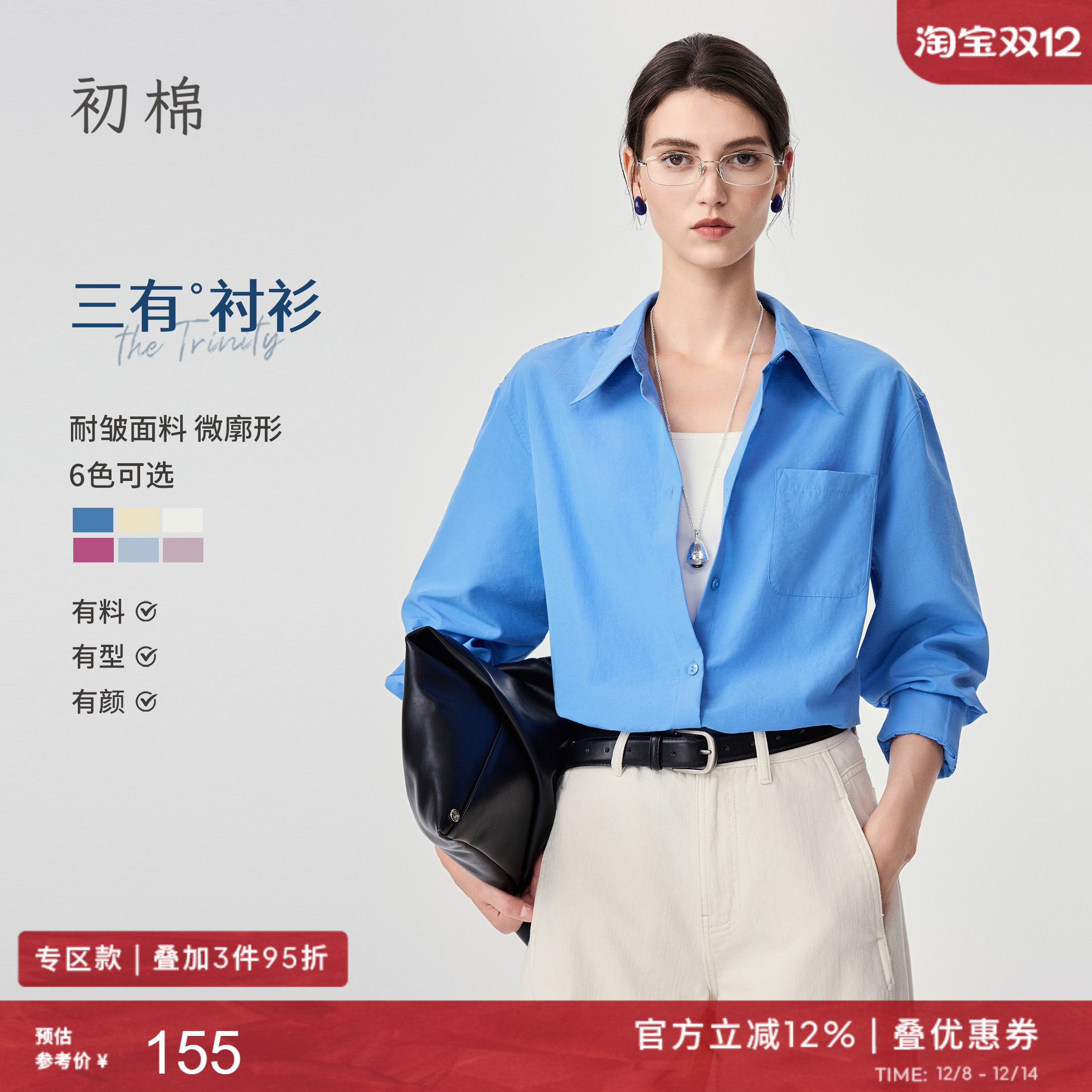 Fall/Winter 2025 Thickened Layered Shirt Women's Inner Top Premium Klein Blue Brushed Shirt Jacket