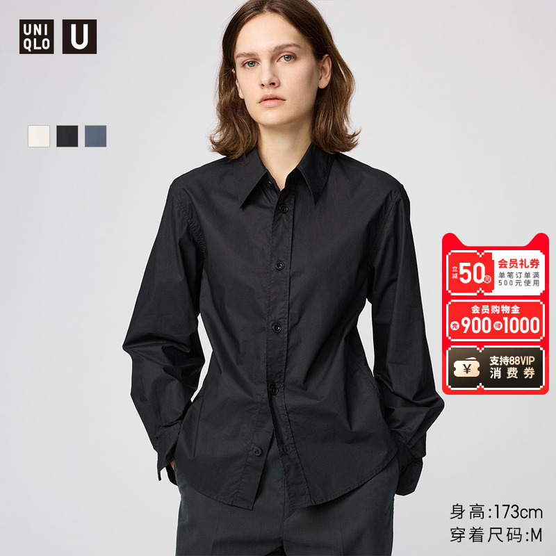 Uniqlo collaboration model/women's cotton shirt/long-sleeved shirt 25 autumn/winter new 480074