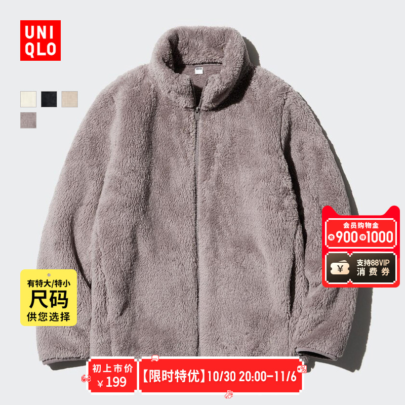 Uniqlo women's men's imitation lambswool fleece casual cardigan long-sleeved loose jacket winter new 479616