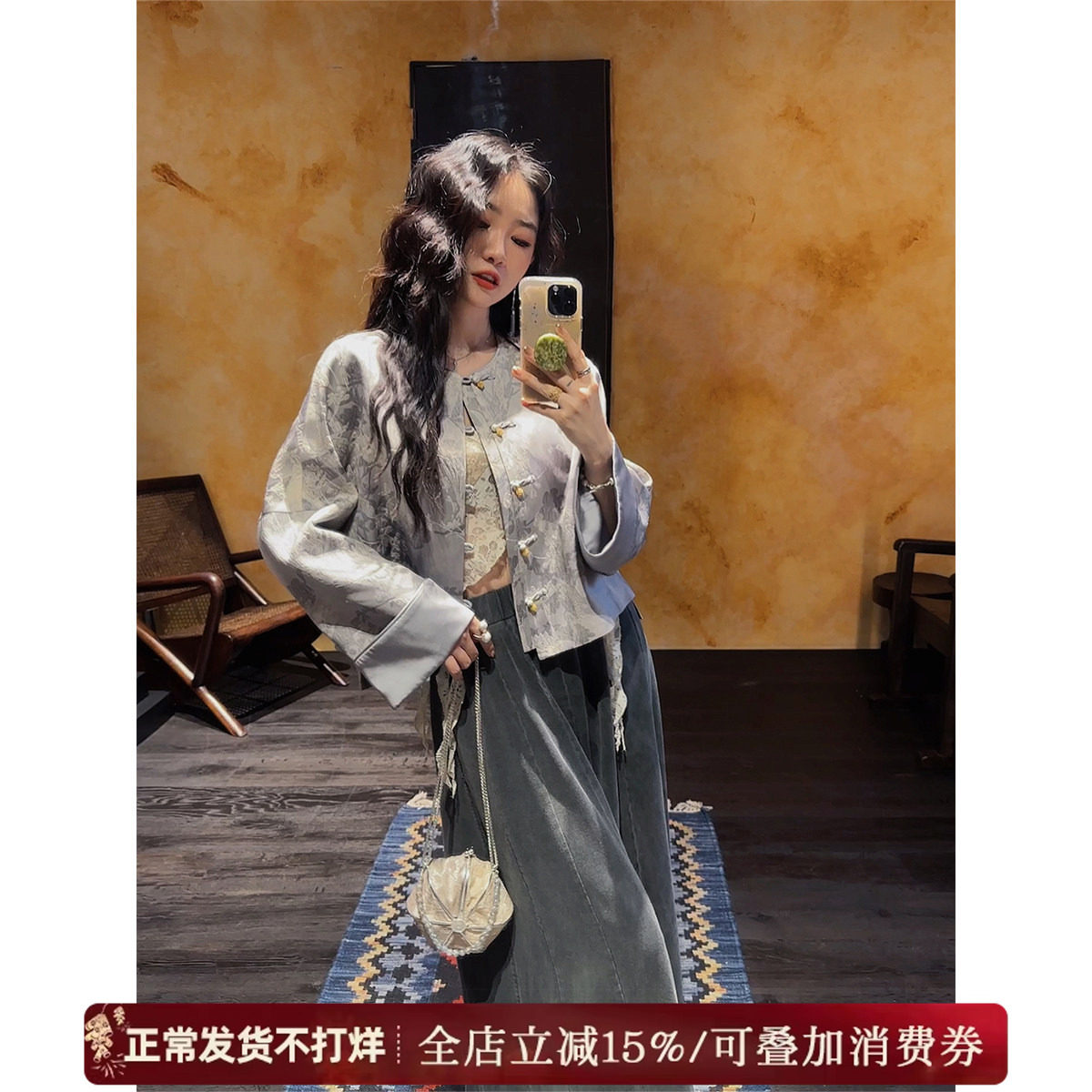 Sanji Black Flower [Jade Brocade] National Style New Chinese Top Early Autumn Jacket Women's Spring and Autumn 2024 New Style is super good-looking