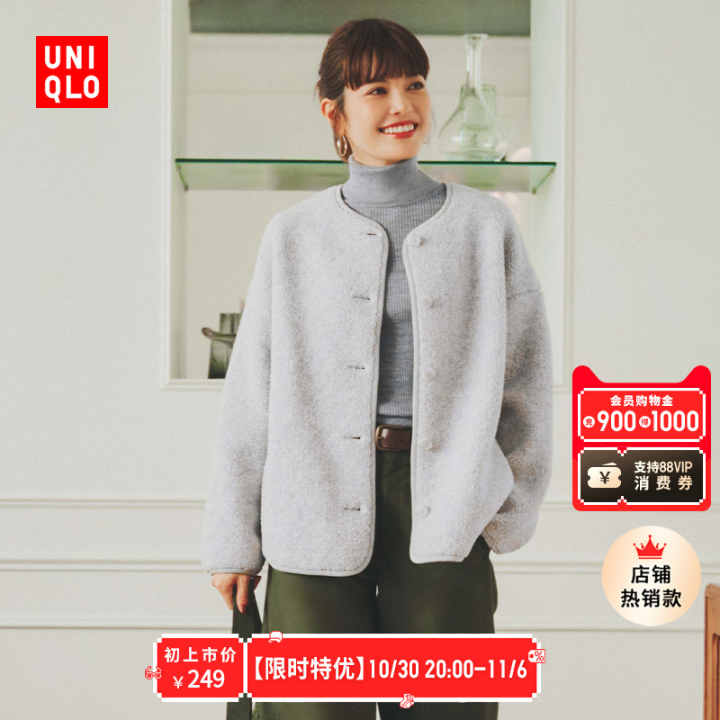 Uniqlo women's imitation lambswool fleece crew neck cardigan/daughter-style jacket 472938