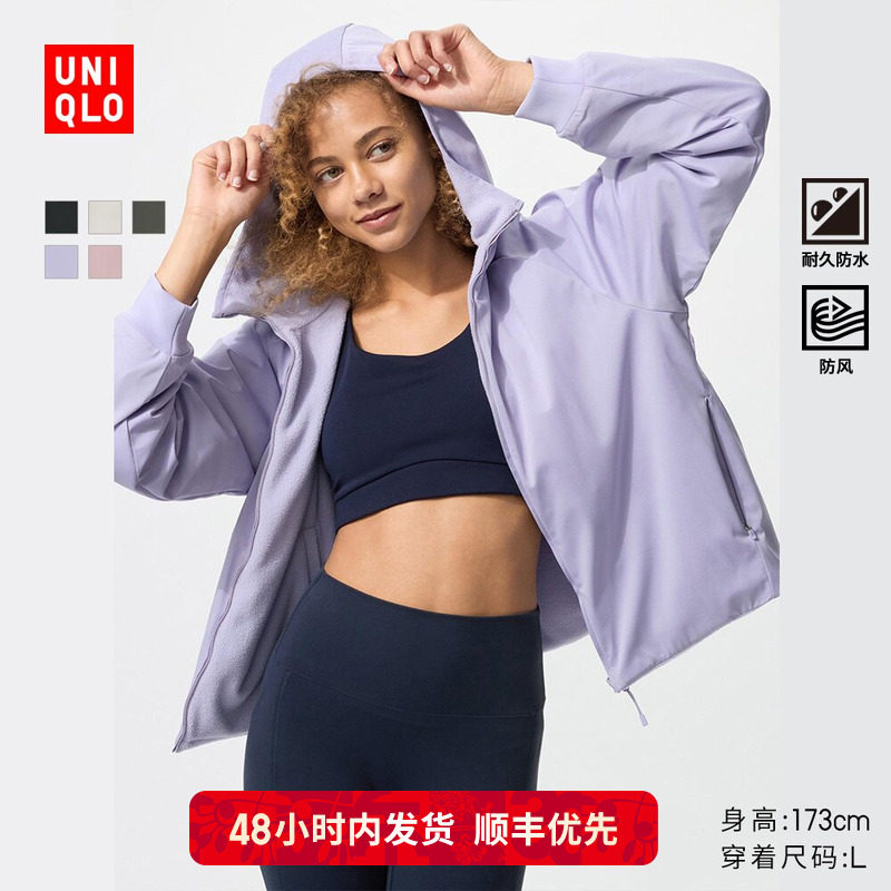 Priority: SF Uniqlo women's double-sided windproof fleece zippered hooded jacket outdoor waterproof 479697