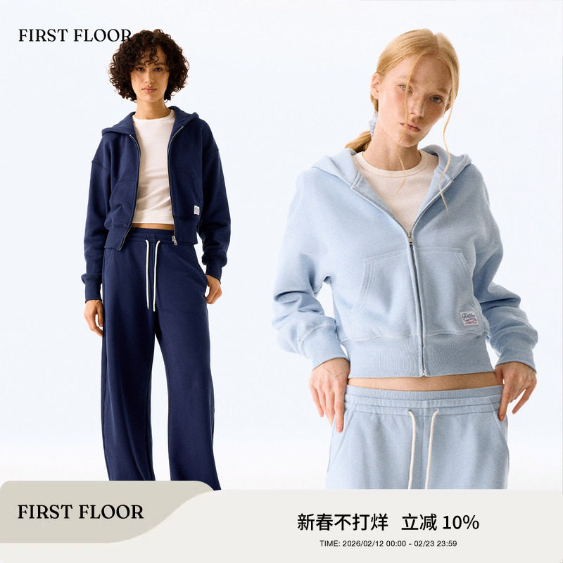 FIRSTFLOOR cloud-sensitive autumn/winter silhouette wears a lazy bat sleeve soft waxy fleece casual hooded sweatshirt set