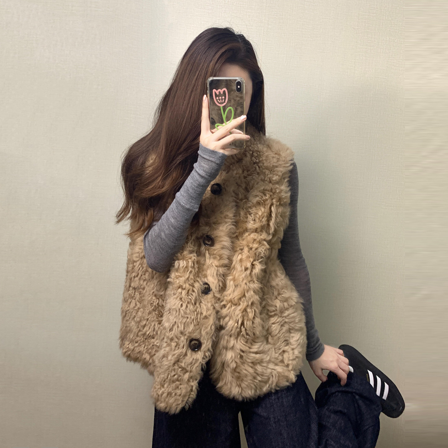 Korean lambswool vest women's 2025 autumn/winter new outer wear is unique and super good-looking, small short sleeveless top