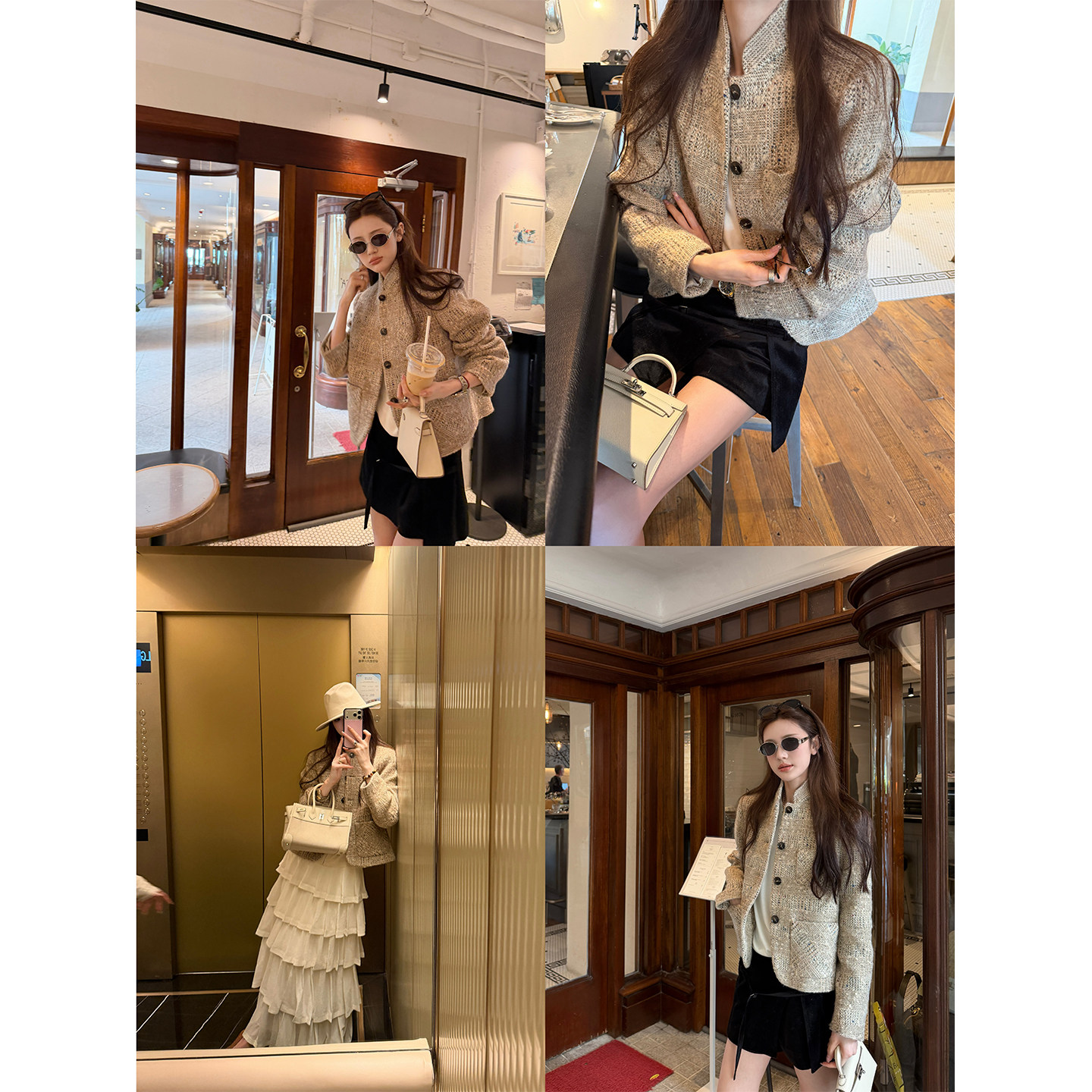 aaaaxbbb Vitus cold tea luxury stand-up collar wool blazer small fragrance short slimming shoulder pad top