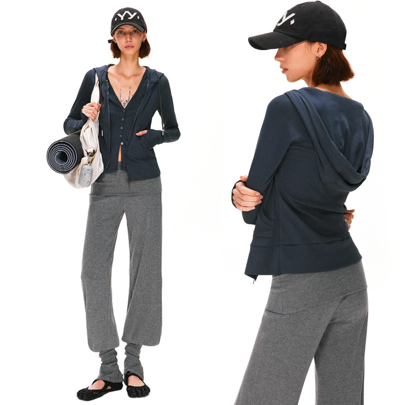 KVKV Navy Blue Snowflake Texture Fake Two Piece Cardigan Hooded Sports Jacket Long Sleeves