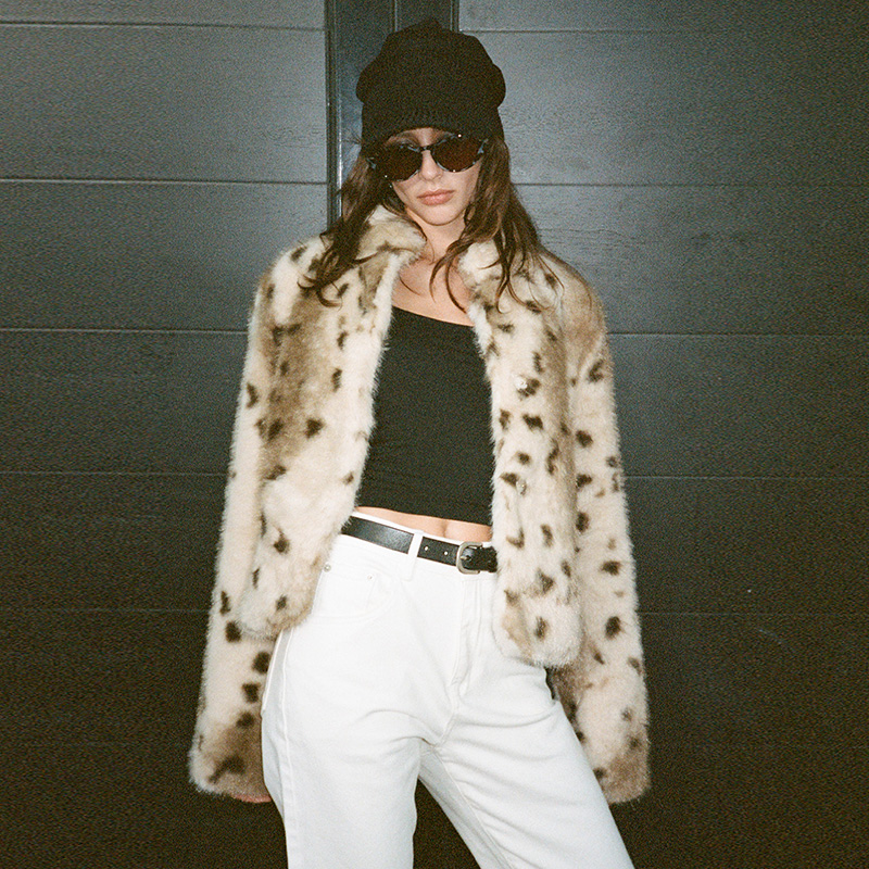 TR She Hot Money Leopard Leopard Pattern Retro Design Stand Collar Short Eco-Friendly Fur Jacket
