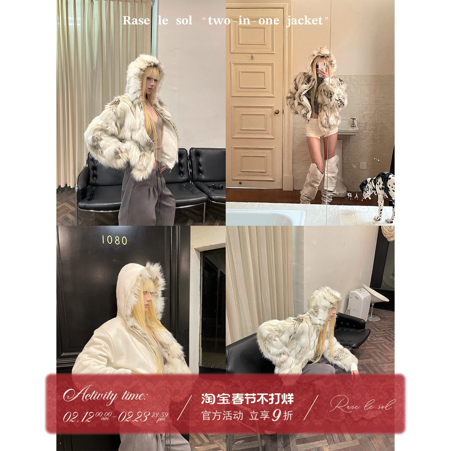 Rase le sol 'Spotty Rhapsody' is a thick fur jacket made of eco-friendly fur on the front and back