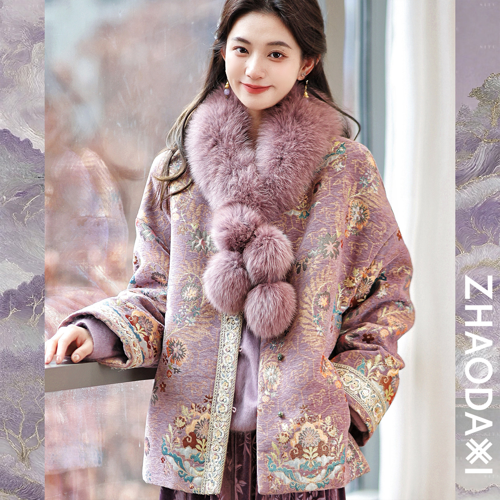 Zhao Daxi|Fanghua Silk Clothes|100 silk filling heavy industry embroidery jacquard gentle and noble national style coat woman