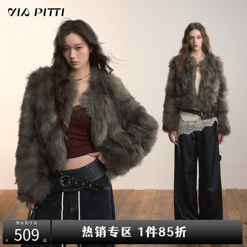 VIAPITTI design sense heavy industry short PU leather jacket environmentally friendly fur women's autumn and winter street style jacket top
