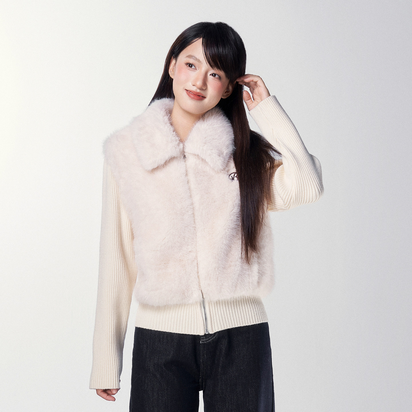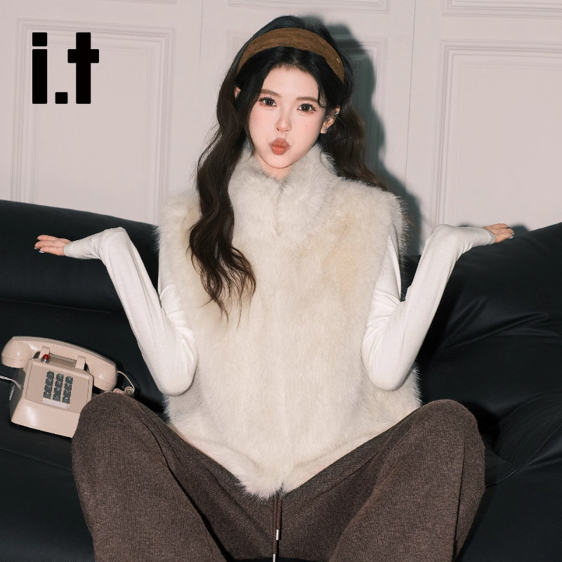 it:CHOCOOLATE Korean gentle apricot furry jacket women's soft waxy stand-up collar vest layered with warm top