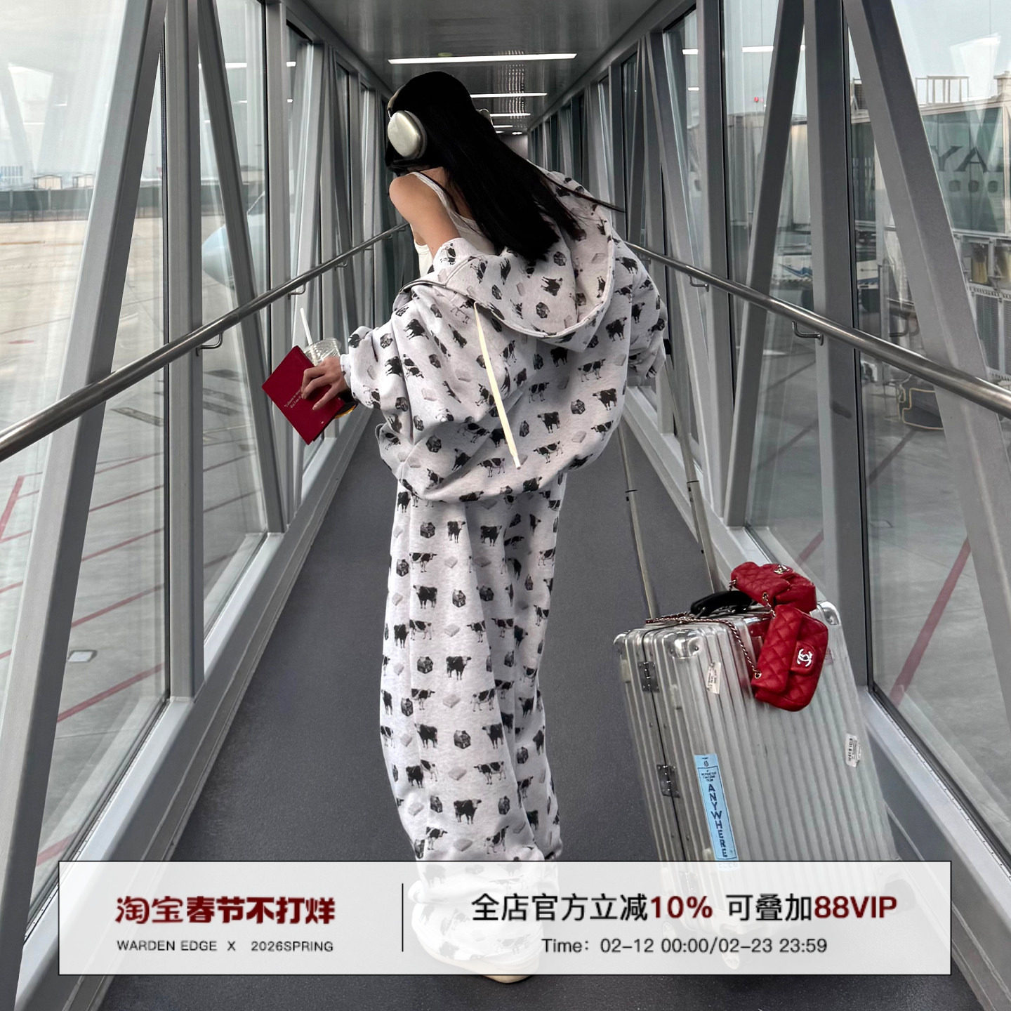 Han Haotian WARDEN EDGE gray calf print hooded sweatshirt women's spring and autumn loose cardigan zippered jacket