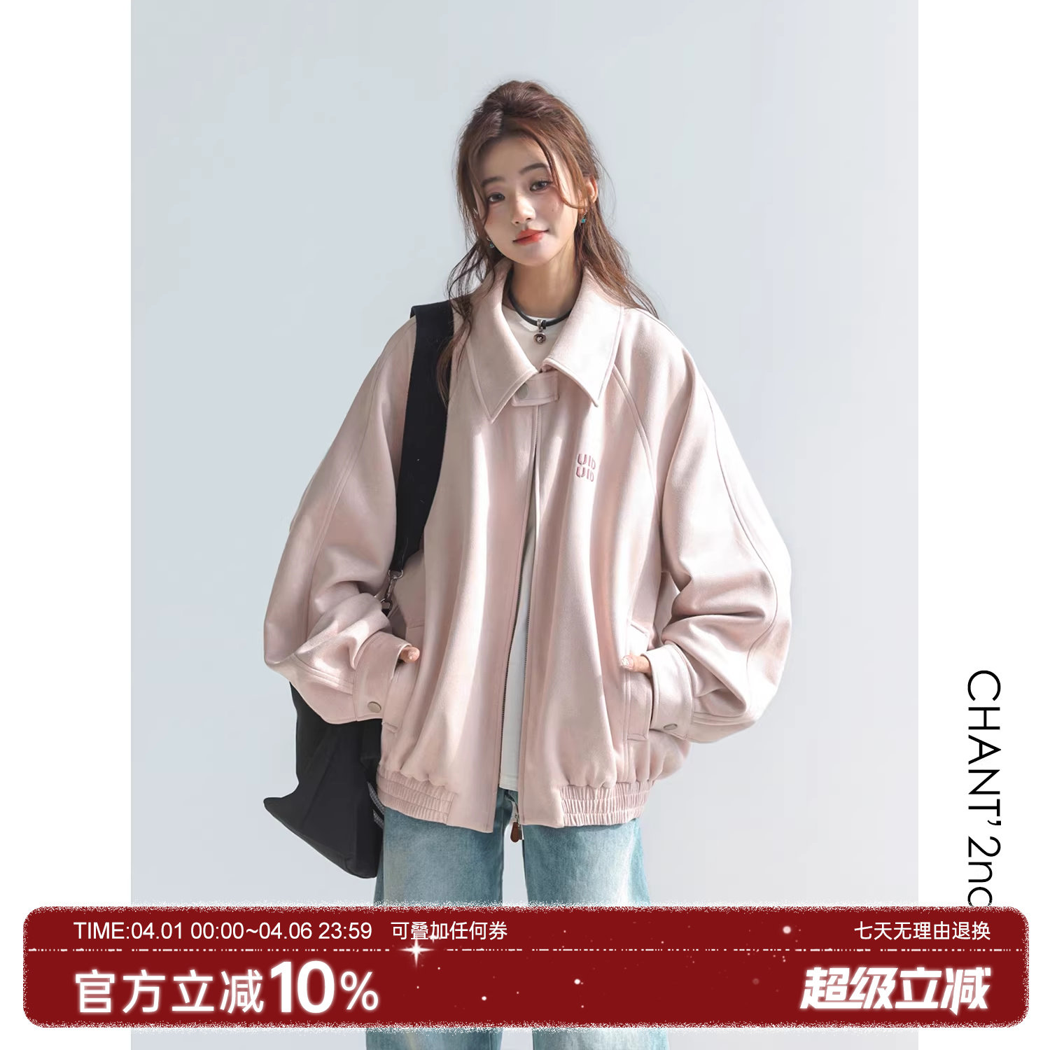 "CHANT2nd" star matches pink suede jacket jacket women's 2026 spring-autumn Korean chic top