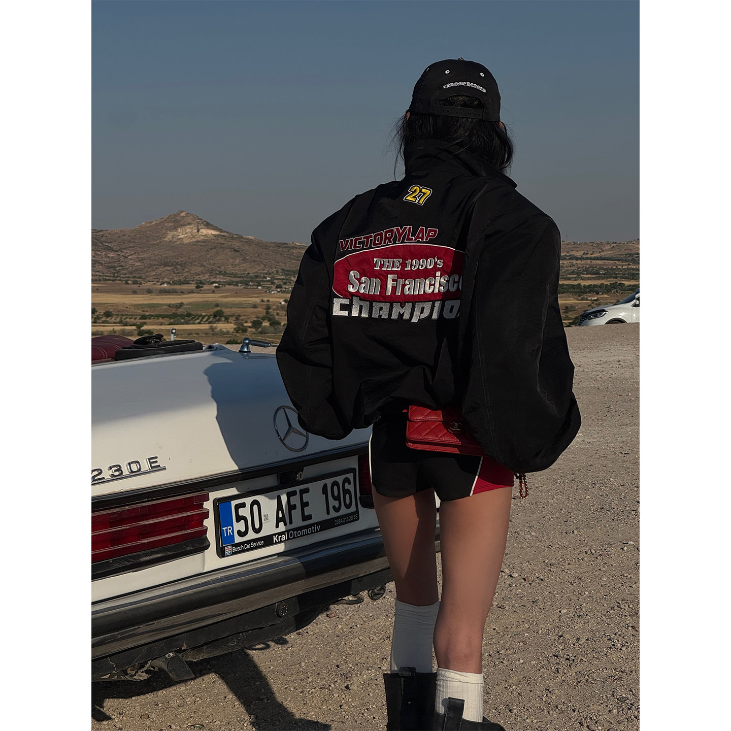 Han Haotian WARDEN EDGE black American baseball uniform women's spring and autumn wide embroidered embroidered casual motorcycle short jacket