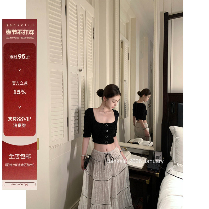 【Spot】Chestnut Cocoa 'Obsidian Daughter' Small Fragrance Tweed Short Sleeve/Lace Skirt Set