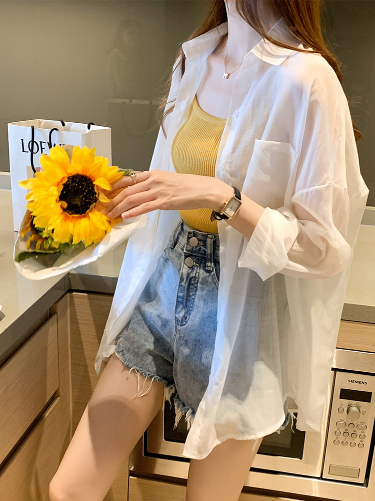 PAIXIANG white cardigan women's summer thin jacket shawl small cover-up sundress with tulle sun protection clothing