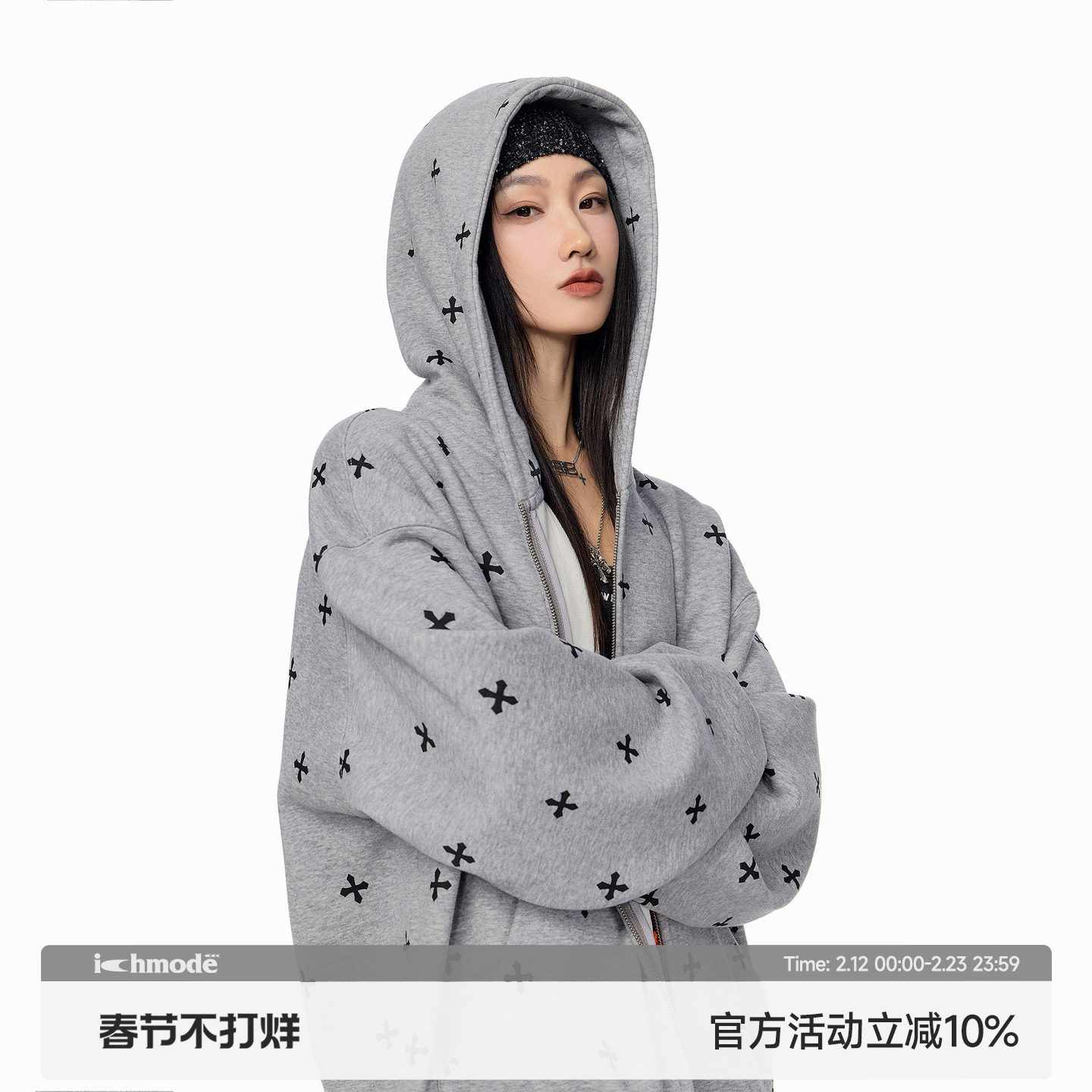 ICHMODE star with the same gothic cross printed gray sweatshirt jacket women's spring new cardigan top