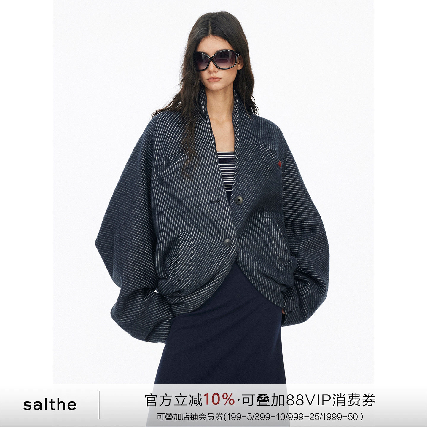SALTHe salt tea * Prussian blue small fragrance wool loose dropped shoulder bat sleeve woolen jacket winter new style