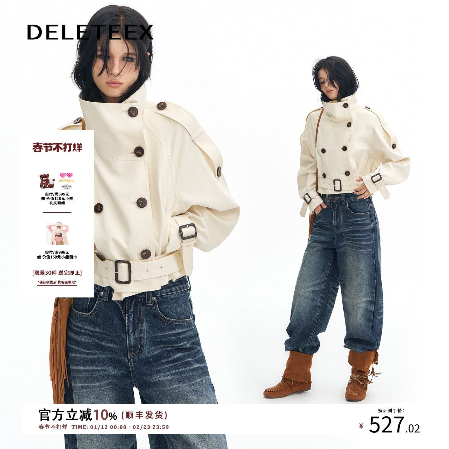 【Zhang Yuxi's same style】Deleteex returns to London stand-up collar silhouette double-breasted high-waisted trench coat short coat