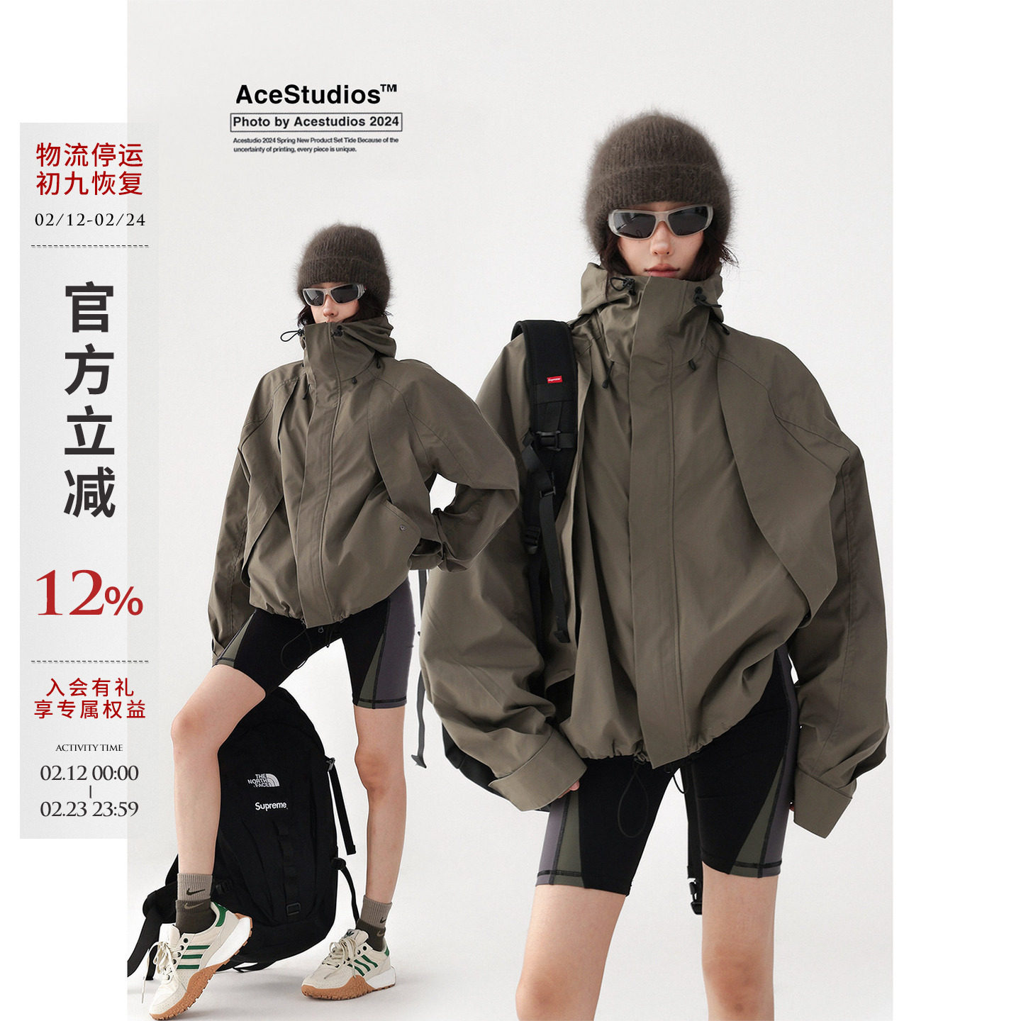 Acestudios fleece American unisex outdoor hiking suit jacket hooded cargo jacket men's and women's trend