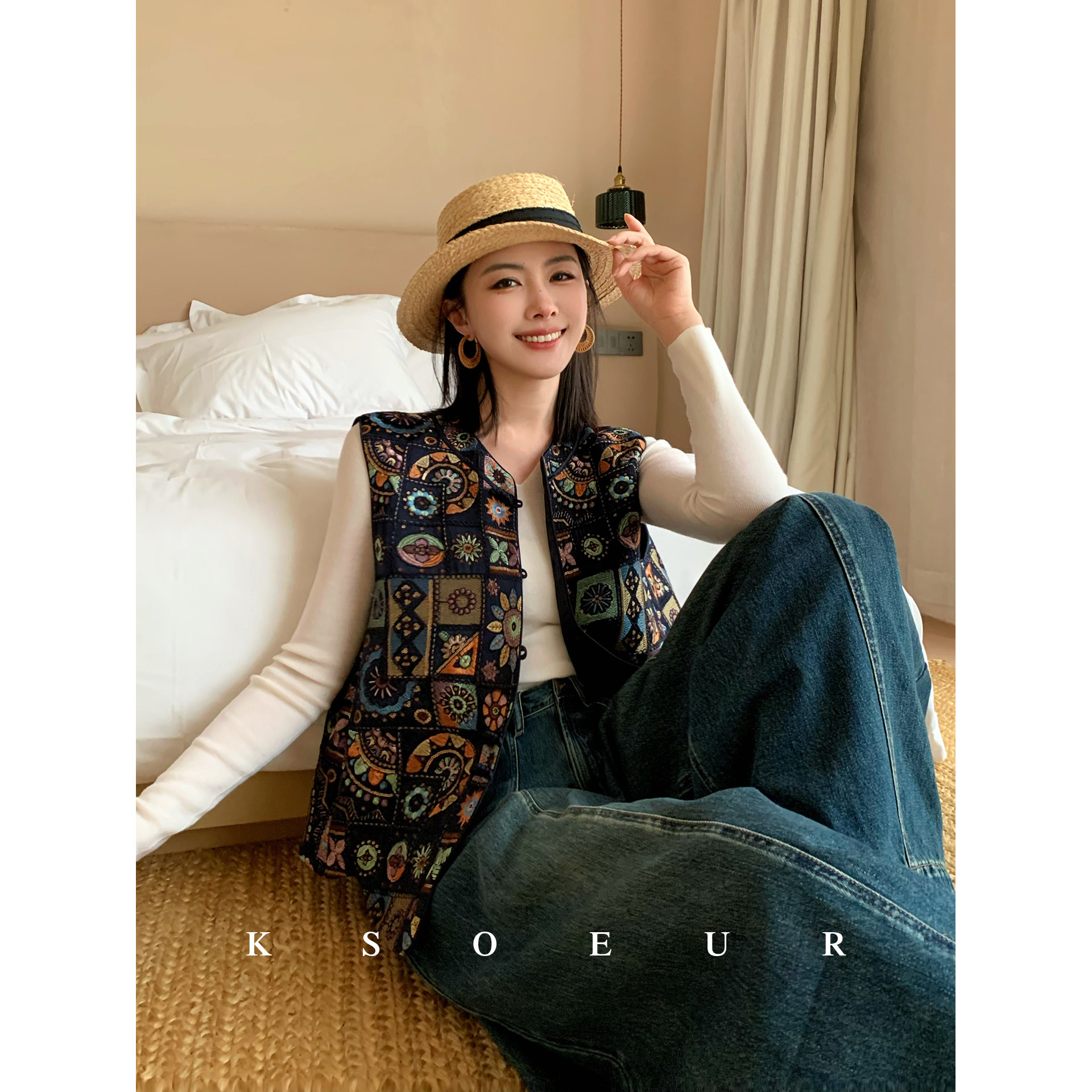 Sister K KSOEUR [Qingyun Full Embroidery] Retro ethnic style three-dimensional pattern embroidery new Chinese vest girl