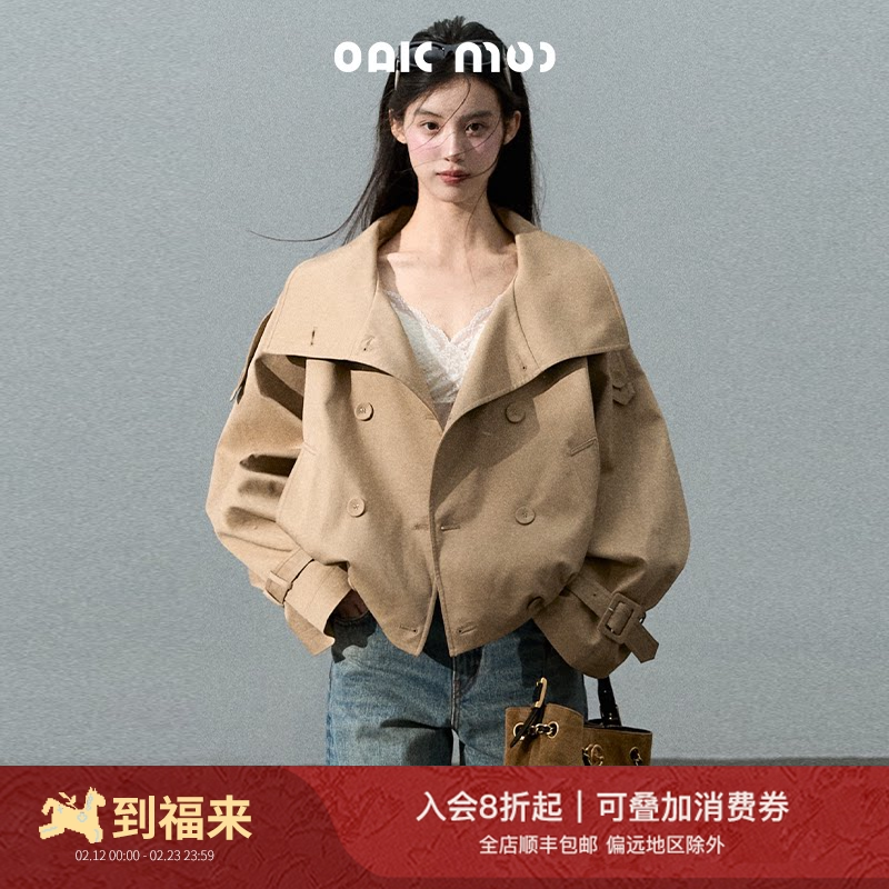 OAKMOO/ "Through the Oak Forest" Lyocell cotton stand-up collar trench coat jacket double-breasted short coat top for women