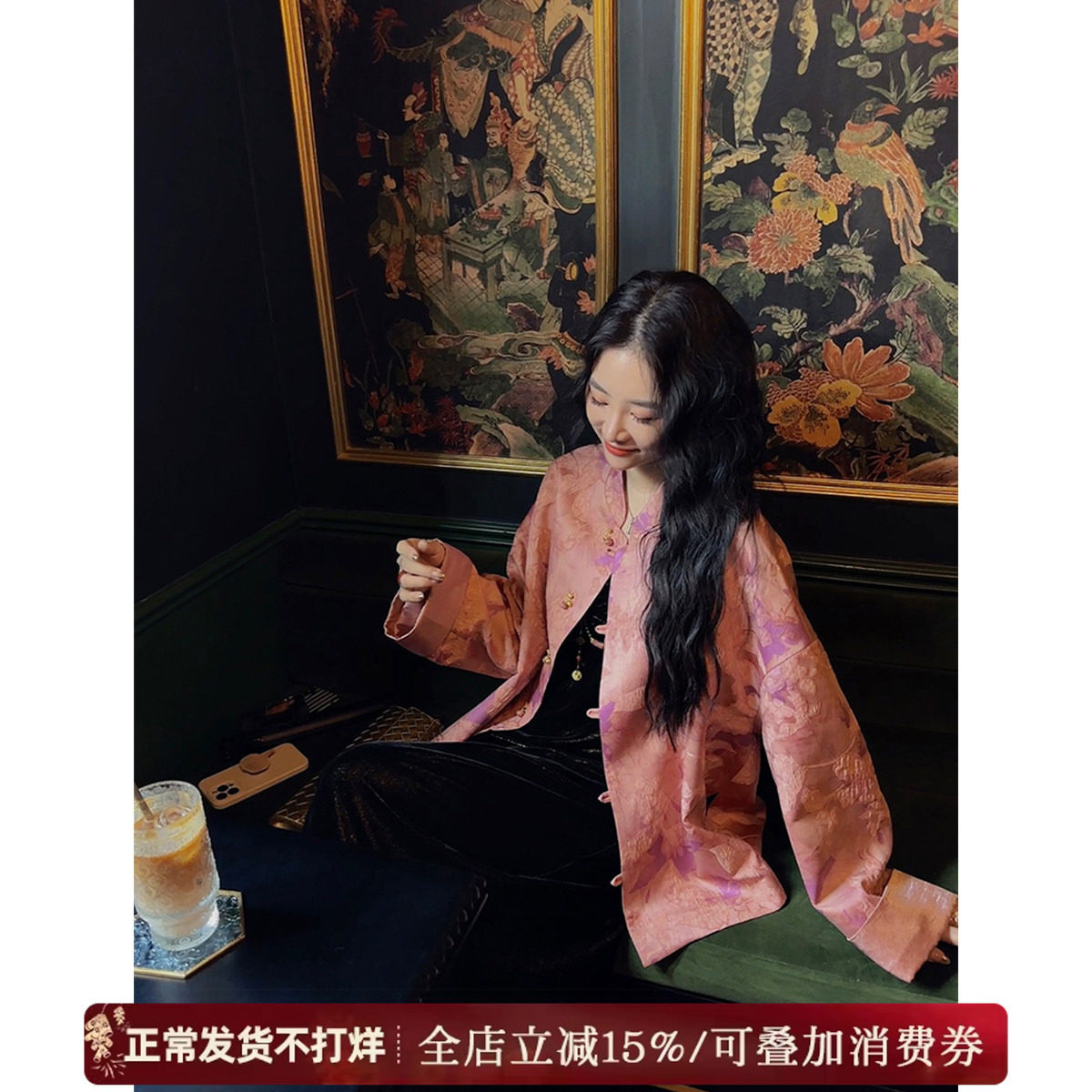 Sanji Black Flower [Yunzhong Jin] New Chinese style bronzing jacket women's spring and autumn model 2024 new unique and super good-looking
