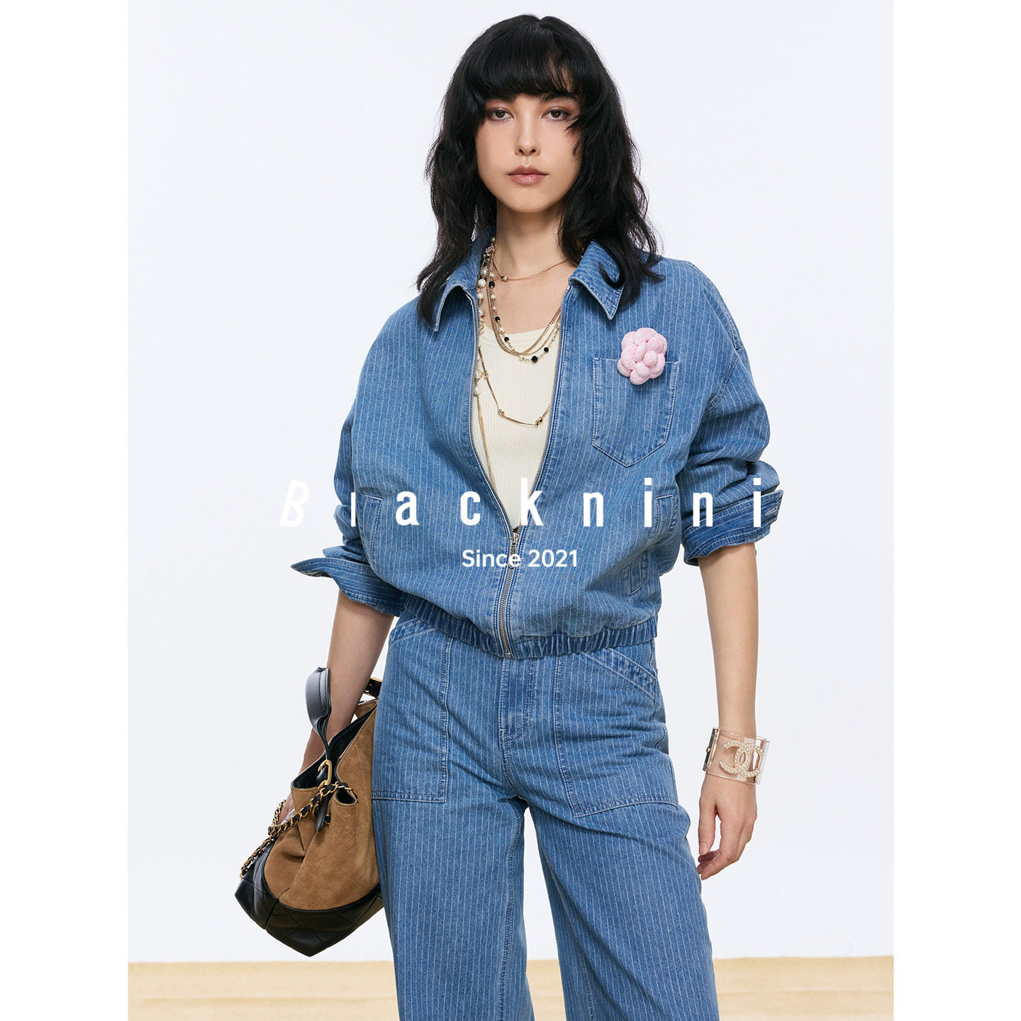 Blacknini "Pete Denim" washed striped lapels miu denim jacket/trousers