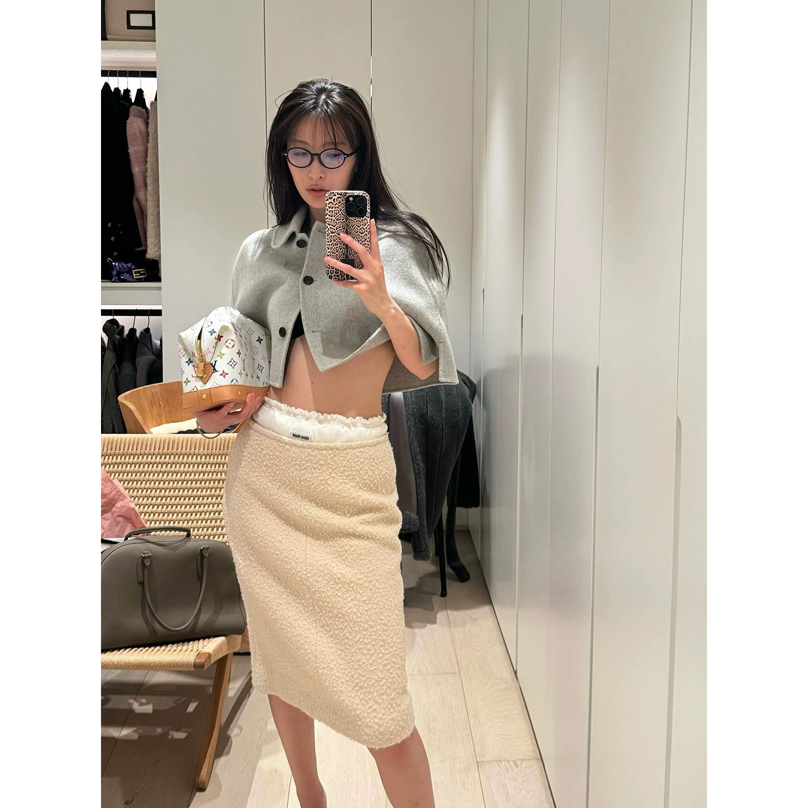 SapphireStreet Pre-Spring High Quality Cashmere Wool Row Lazy Delicate Light Milk Grey Shawl Cape