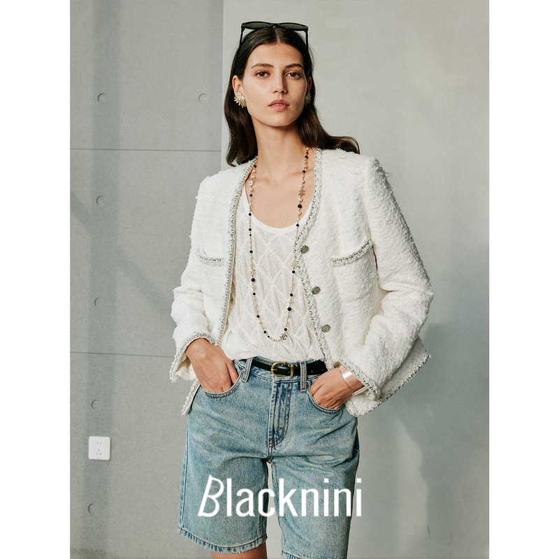 Blacknini (tricolor) "Rose Series" Italian Ubertino pearl tweed scented jacket