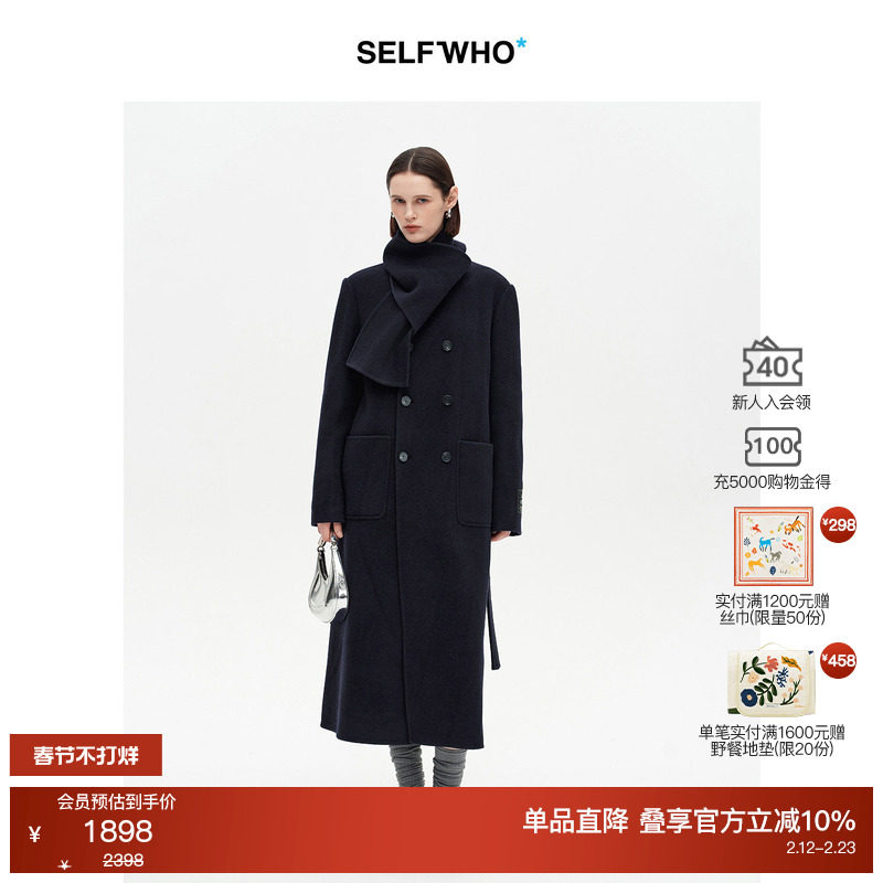 [Zhao Jinmai same style] SELFWHO sheep wool scarf collar woolen coat women's winter wear new 100 high support coat
