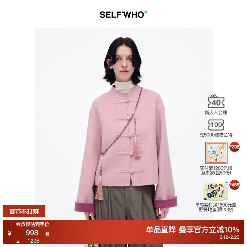 [Jiang Yan's same style] SELFWHO Sheep Wool New Chinese Coat Jacket Women's Winter National Style Pink Short Top