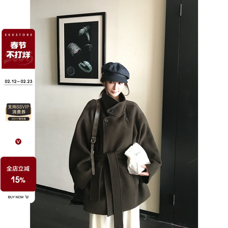 Maillard wears a stand-up collar cropped woolen jacket for women's 2025 fall/winter new small Korean high-end coat
