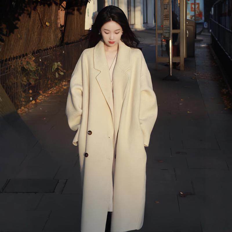Reversible cashmere coat women's mid-length 2025 Fall/Winter oatmeal new Korean loose high-end wool wool jacket