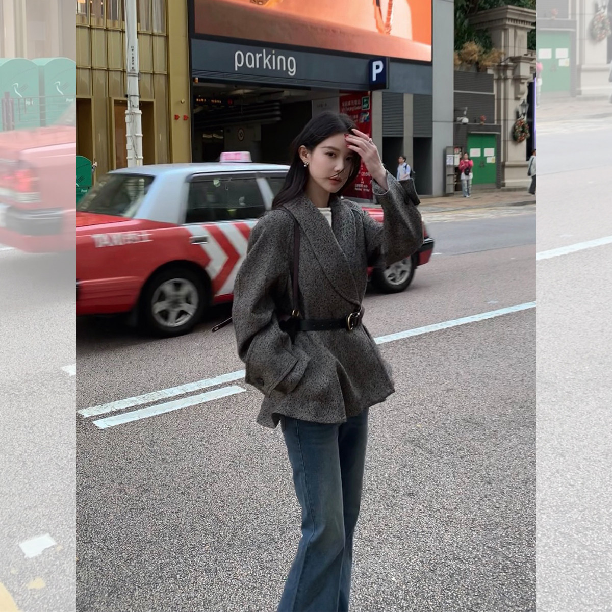 CHUYUQI Norwegian Forest Autumn and Winter American luxury woolen cropped jacket with a belt silhouette intelligent tweed