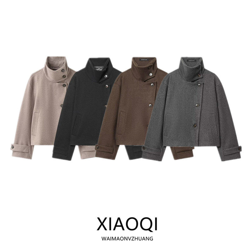 European and American style winter 2025 new products women's commuting versatile long-sleeved double-breasted stand-up collar jacket 6318293