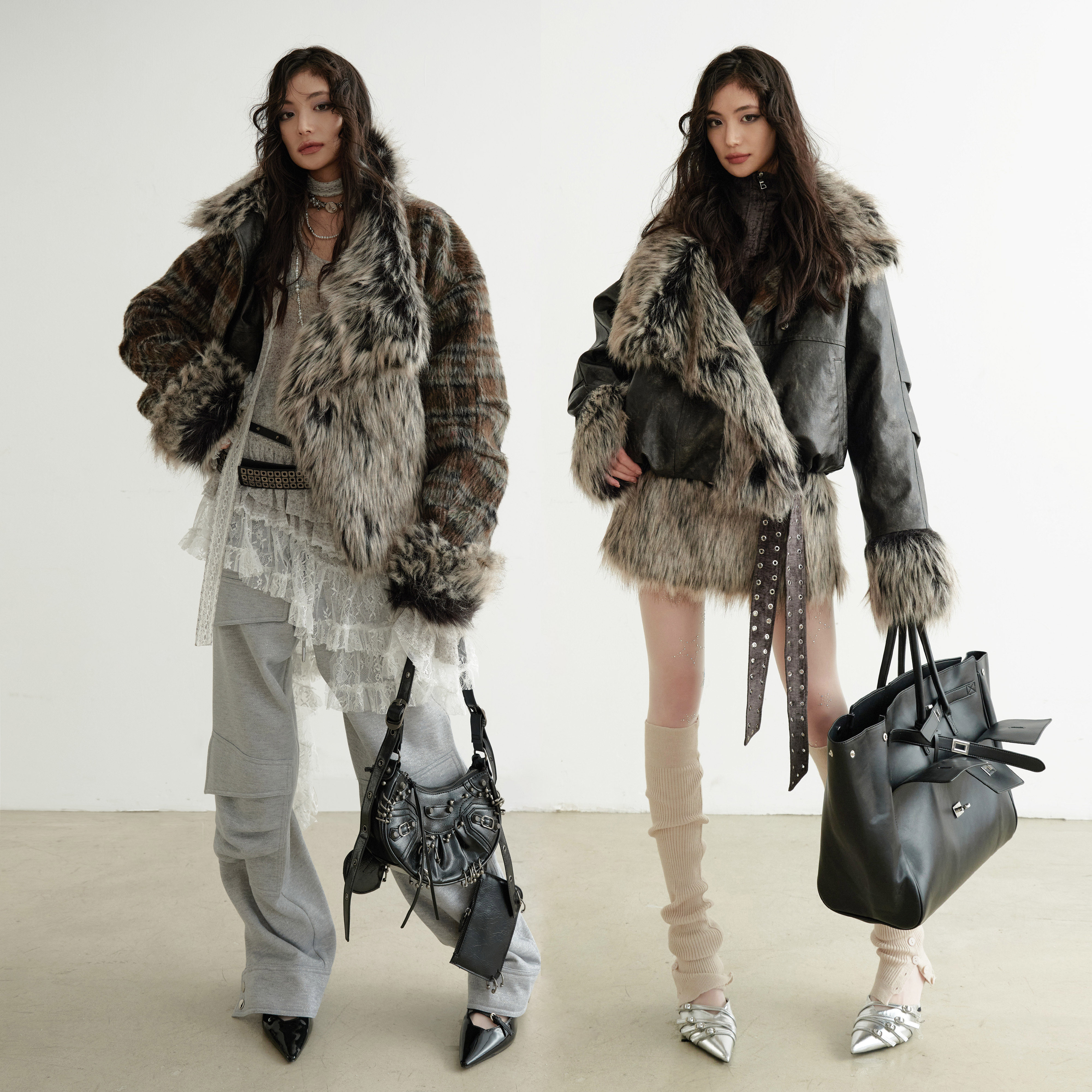 The new 2025 autumn model Kim Min-hee has the same Korean loose stand-up collar reversible wool coat and a short lace-up woolen jacket