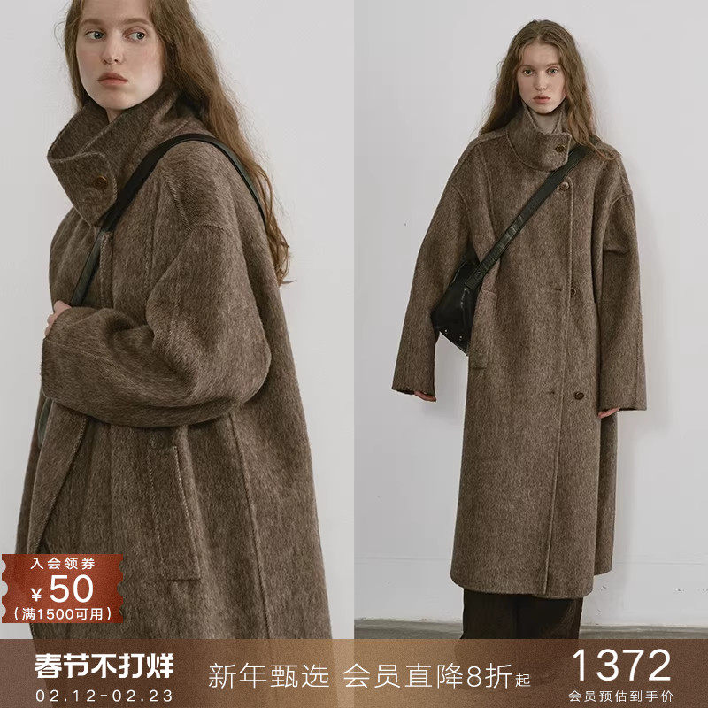 SRYS AME temperament high-end stand-up collar long loose wool coat reversible woolen jacket autumn and winter wear new women's style